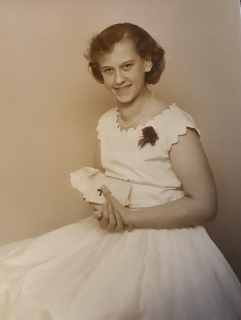 - Jeg blev konfirmeret 12. april 1964. Lyserødt skærf, hvide handsker og sko med hæl samt permanentet hår. Jo, så var man næsten voksen.